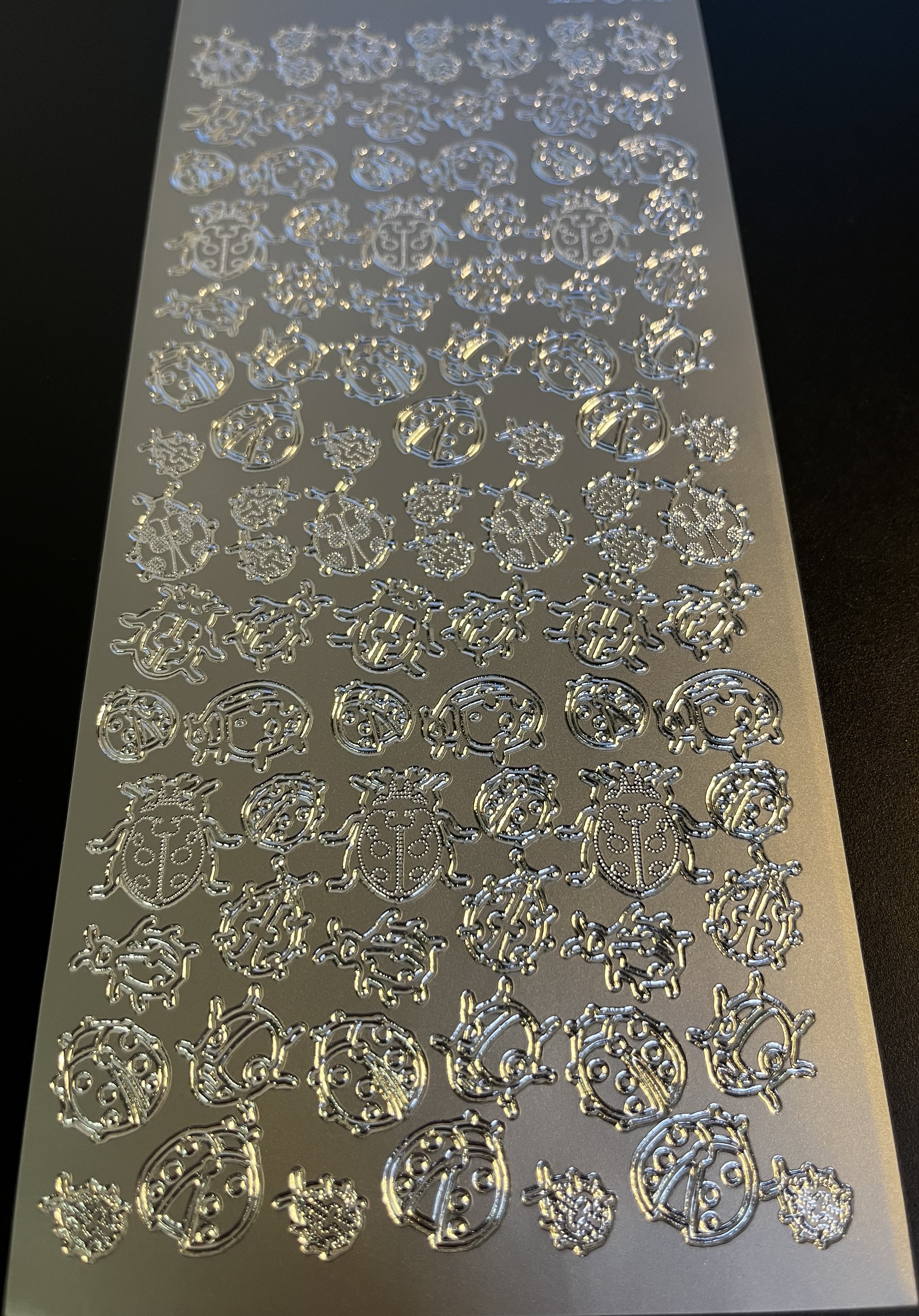 Obrysové samolepky 5ks, 10x23 cm - brouci, stříbrné
