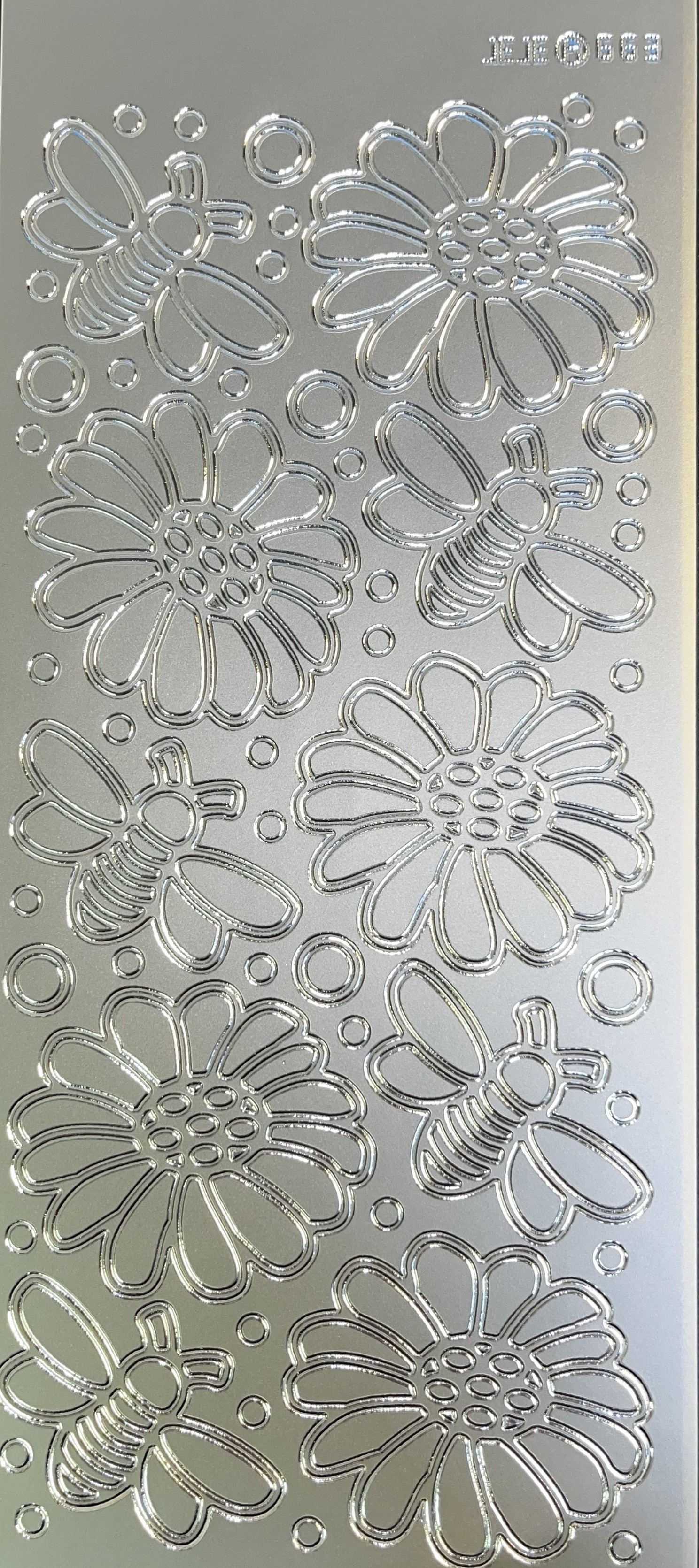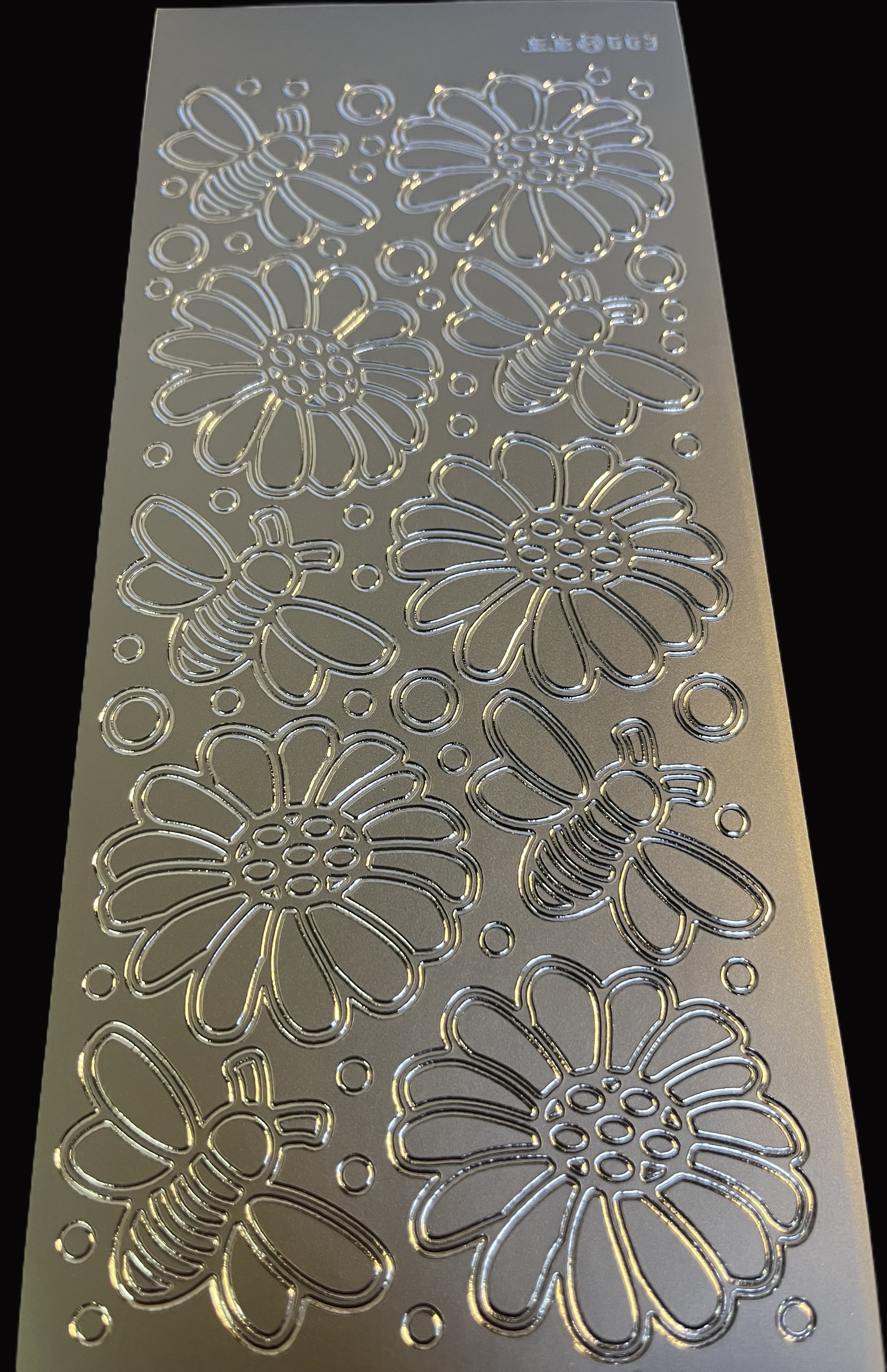 Obrysové samolepky 5ks, 10x23 cm - květy a včely, stříbrné