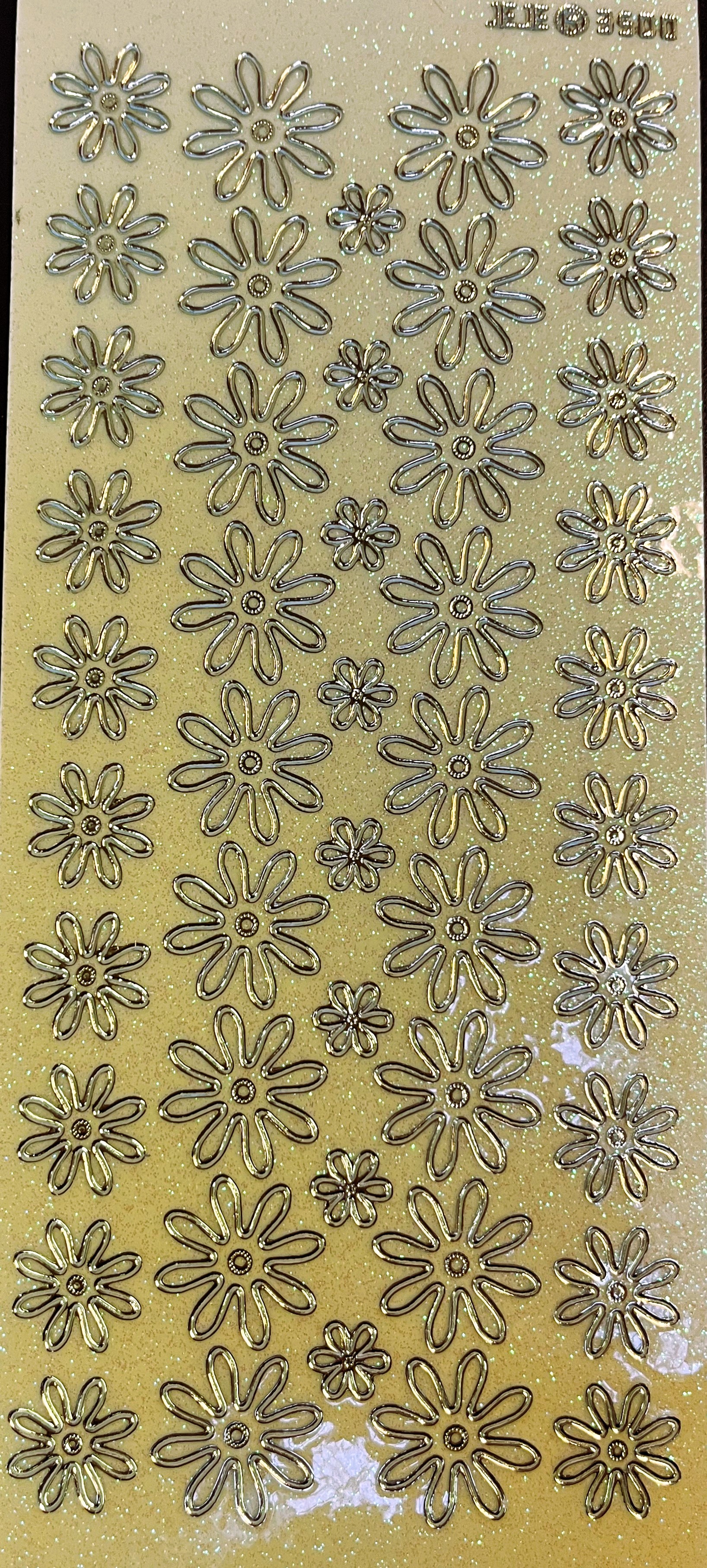 Obrysové samolepky 5ks, 10x23 cm - květy žlutý třpyt, zlaté