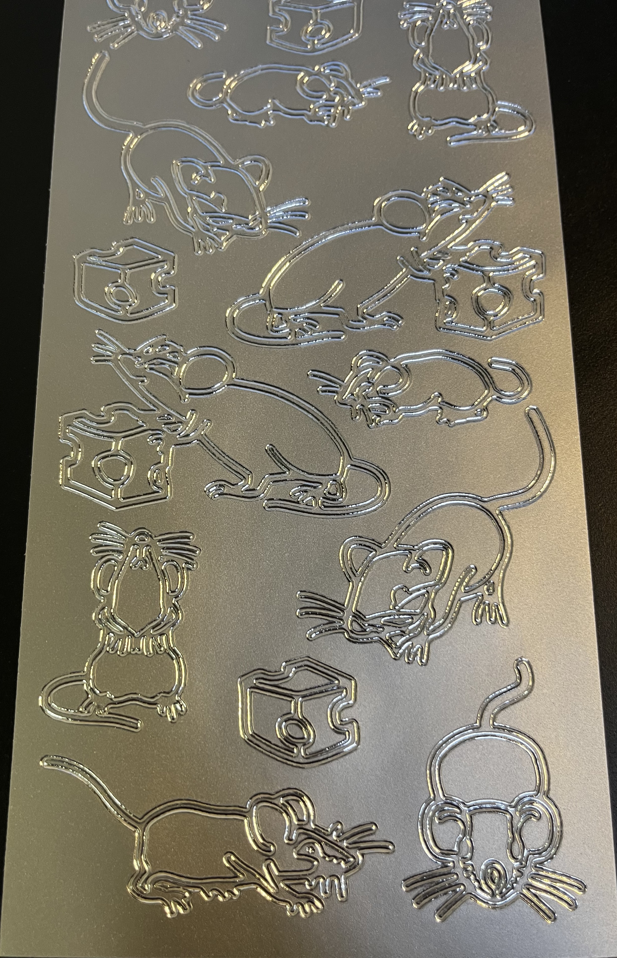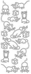 Obrysové samolepky 5ks, 10x23 cm - myši, stříbrné