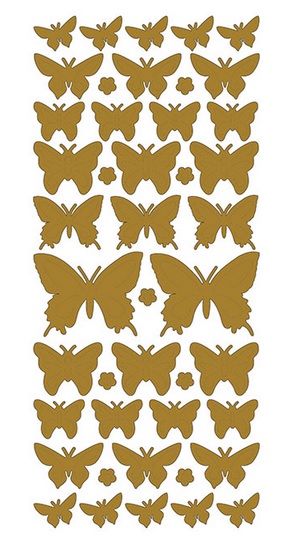Obrysové samolepky 5ks, 10x23 cm, zlatí motýli, hologram