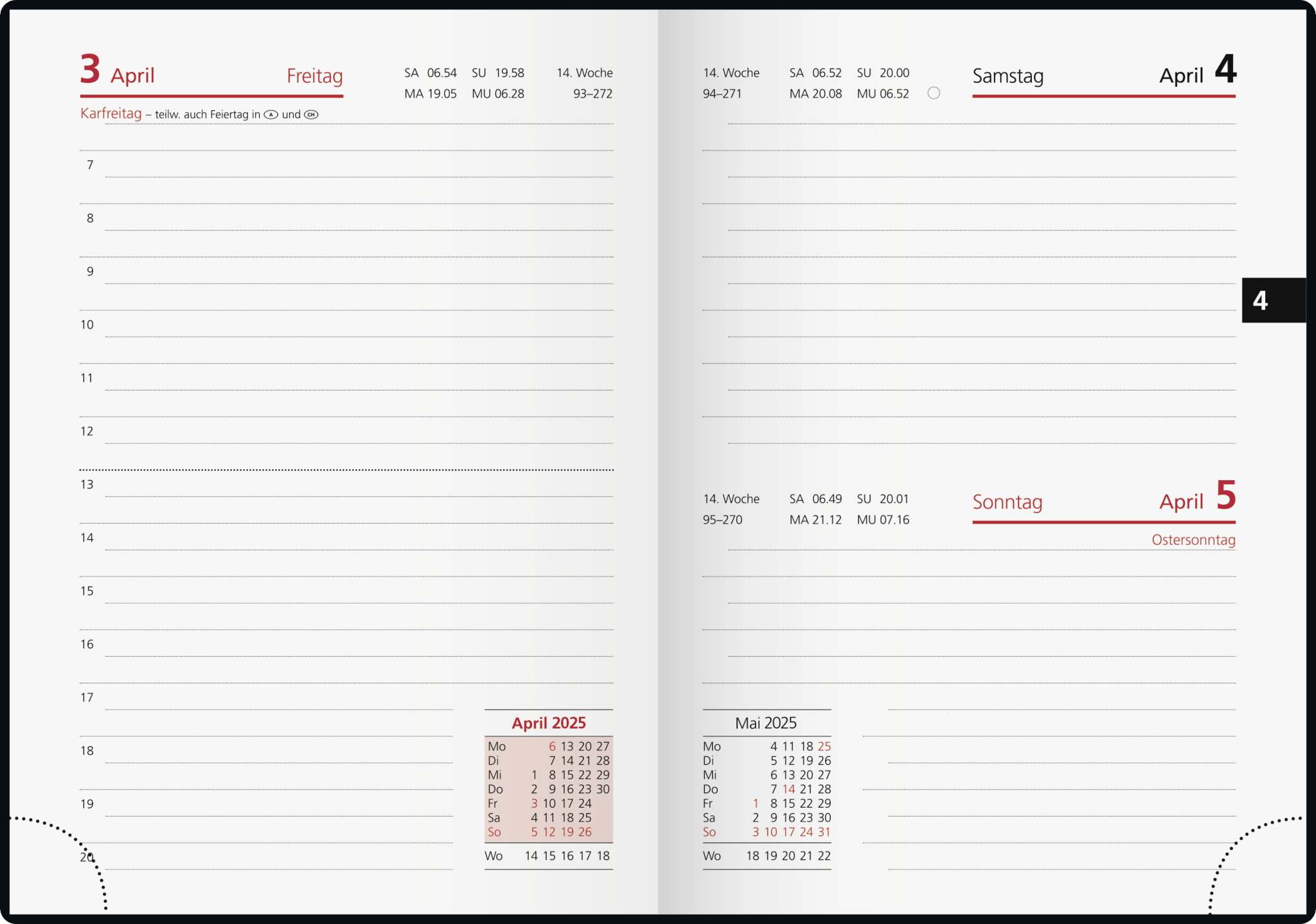 Velký diář 2str/týden,Miradur černý - 4 jazyky